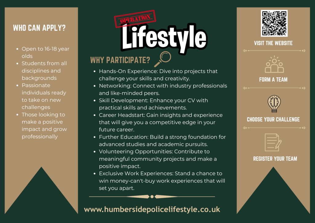 - Attend a school/college located in or with a catchment area covering the Humberside Police area.